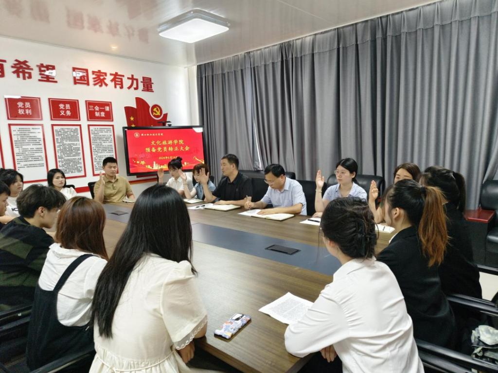 为加强基层党组织建设,规范做好发展党员工作,培养优秀党员,6月14日上午,谈球吧体育官网入口在五区党员活动室召开预备党员转正大会,讨论预备党员桑肖婷、徐行行等27名同志转正问题。学院党总支书记展贤东、学生支部书记普俊、学生支部全体党员、各位学生入党考察培养人参加会议。会议由学生支部书记普俊主持。